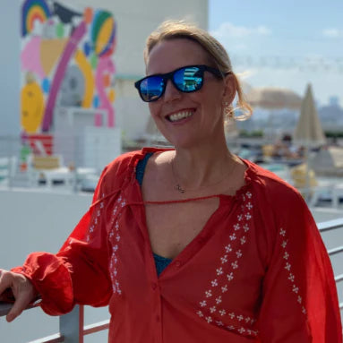 Kay began collaborating with Line in the Sand® to help create a line of waterwear that is conceived, designed, and constructed in the USA all while enriching the lives of women who live their best lives near the water.