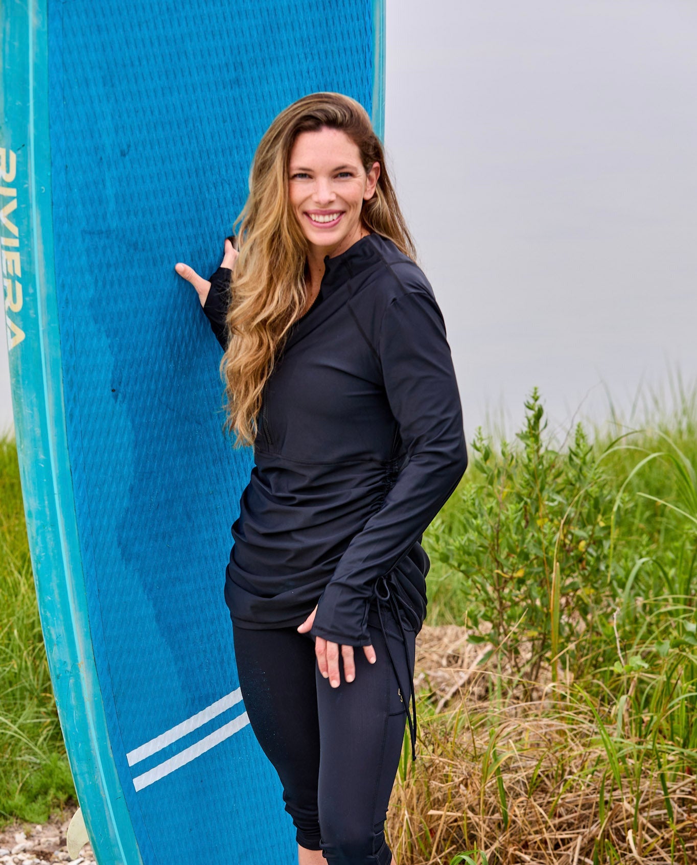 "Line in the Sand first caught our attention with its collection of non-traditional water wear that has UPF protection—think swim leggings. Then we learned that the company gives 100 percent of profits to cancer and ocean organizations, and we became fast fans."